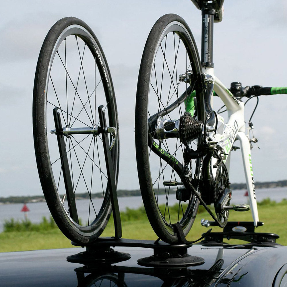 Het SeaSucker Flight Deck is een upgrade voor iedere SeaSucker fietsdrager om zo ook het voorwiel op het dak te kunnen vervoeren. Op de rechter vacuümcup komt het achterwiel te rusten en de steun ernaast biedt ruimte aan het voorwiel.  Zo bespaar je ruimte in de auto voor je overige bagage.